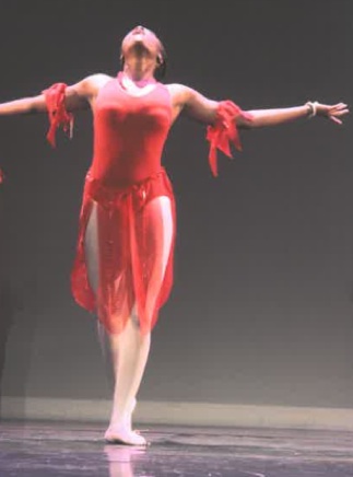 Accessoire : Les bras ont un voile rouge avec des passants chairs pour passer le poignet et l’avant-bras.